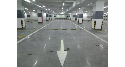 停車場環氧地坪要求耐磨性強,耐高強度沖擊性,高荷載的汽車行駛區域,因車在行駛時與車道的摩擦力非常大,且車的沖擊力大,因此車道、車位一般采用環氧樹脂地坪涂裝系統。