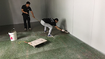 | 水泥自流平打磨處理 | 防靜電膠水施工(一) | |